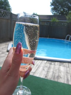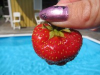 Jag har njutit vid mammas pool tillsammans med Emelie idag också. Hade smort in mig med solskyddsfaktor 50 och hade stor solhatt på för att inte utlösa någon GVH- reaktion. Vi åt jordgubbar, vattenmelon och skålade med alkoholfritt bubbel över att vi är ett sådant radarpar i fighten mot cancer. Vi har alltid känt att vi har en speciell relation, men nu är den om möjligt än mer speciell. Hon har gett mig chansen till att klara mig, och har delat med sig av sitt eget blod och kanske av ett liv. Det är helt underbart och häftigt på samma gång. Hennes blod flyter i mina ådror, bokstavligt talat! Vi känns som en.