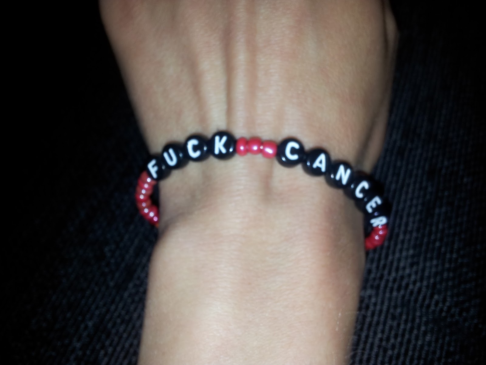 Idag har jag dragit mitt strå till stacken vad gäller välgörenhet. Min söta lillasyster och jag åkte till Ung Cancers lokal i Münchenbryggeriet och gjorde ”Fuck Cancer- armband” som dom sen säljer på sin hemsida för 100:-. Det kostar inget, man bara åker dit, fikar och gör armband. Är du intresserad så kan du hitta deras tider här: http://www.ungcancer.se/gor-skillnad/parldagar Det är riktigt mysigt och rofyllt. Jag gjorde ett egendesignat armband som min lillasyster köpte åt mig ❤ Det är helt i rött eftersom det är min favoritfärg. Färgen gör mig varm och ger mig en känsla av kärlek. Den har även blivit en koppling för mig till "rent" cancerfritt blod och det var färgen jag valde till min blogg också. Därför tyckte jag att det passade bra. Lustigt nog konstaterade både jag och Emelie att de röda pärlorna såg ut som benmärgen dom sög ur min höft för några månader sen.