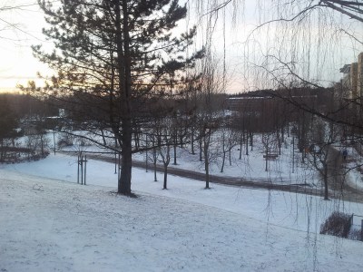 Jag var ute idag, för första gången på väldigt många dagar. Jag vågade mig inte så långt från mitt rum, men det var en ljuvlig promenad som gjorde skillnad och gav mig energi. Att hinna få lite dagsljus innan solen gick ner bakom granarna som kontrast till lysrören och glödlamporna. Att få känna den friska luften och minusgraderna istället för enbart den torra luft som vi har cirkulerande inomhus den här årstiden (på mitt rum får det heller inte öppnas några fönster). Att få knarra mig fram på vinterns första snö.