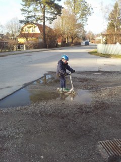 | Varenda vattenpöl skulle det sparkas sparkcykel i… |