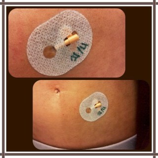 För er nål- rädda så valde jag att lämna den här bilden nedanför till sist så att ni kan hoppa över den om så önskar, utan att missa någon info. Det är mitt senaste lilla tillskott för att slippa så många stick som möjligt. Eftersom jag emellanåt får morfin subkutant nu, dvs som en liten dos under huden i magen som kan svida ganska mycket beroende på var nålen går in eftersom man har en hel del ytliga nerver där, så satte den duktiga sköterskan Viktoria in en liten söt infart i magen som jag kan få alla dom sprutorns i. Den känns inte alls där den sitter och det känns skönt att slippa bli stungen varje gång. Den enda nackdelen är att vätskan nu hamnar på samma ställe varje gång, men om det inte stör något så kan infarten gott och väl sitta där i upp till en vecka, Smidigt!