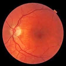 För första gången fick jag se fotona på mina ögonbottnar. Vilka häftiga bilder! Ungefär så här såg fotona ut, men just det här ögat är hämtat från Google så det är inte mitt: