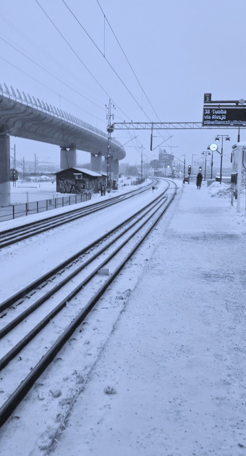 Matt hoppade jag på tåget och tog mig till Huddinge sjukhus. Hittade ett guldkorn i snöyran – vad det är skönt att få åka kommunalt och slippa Färdtjänsten! Den var toppen när den behövdes, men jag njuter fortfarande av att få sitta bland folk igen. Med gröt i huvudet så blandade jag ihop var jag skulle infinna mig idag och gick dessutom trög nog runt och trodde att det var torsdag, tills tjejen i Centralkassan upplyste mig om annat.
