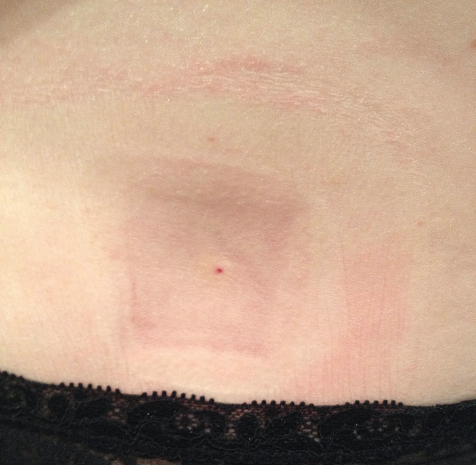 Nu, snart en vecka senare är jag fortfarande öm där nålen gick in. Det känns dock bara om jag kommer åt, till exempel när jag lutar mig mot ett ryggstöd. Carina sa att jag skulle förvänta mig ett ordentligt blåmärke, men det slapp jag.
