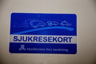Nästa försök var taxi, även om det kanske inte skulle vara lätt att få tag på någon en dag som den här. Att betala några hundralappar för en resa när jag precis lagt 790:- på SL.kort var inte att tänka på. Att ligga ute med dom slantarna någon månad innan jag kan få ersättning går inte heller (det är inte skoj att vara sjukskriven). Alternativet var att åka på sjukresekort (färdtjänst) för 140:-. Det är en summa som jag kan ta. Problemet nu var att jag inte har använt det på nästan ett år och därför inte hade det i plånboken. Carina klurade tillslut ut att hon skulle ordna ett kort på sjukhuset och när taxin kom skulle jag uppge kortnummer och sedan skulle hon möta mig i entrén med kortet. Sagt och gjort. Jag googlade på Taxi Stockholm som jag vet har avtal med Färdtjänst.