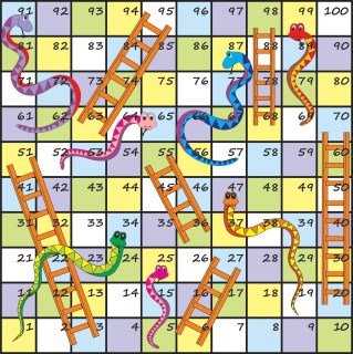 Hah, nu blev det här en ganska deppig text märker jag! Full med negativ energi och pessimism. Det var faktiskt inte alls min tanke. Jag konstaterade. Inget mer. Så här är livet. Man tar två steg fram och ett steg bak. Har du spelat ”Snakes and ladders” någon gång? Det går ut på att ta sig med tärning från start till mål, men på vissa rutor som man hamnar så finns en orm som man halkar tillbaka på. Och i nästa slag så kanske man hamnar på en ruta med en stege som tillåter en att klättra upp på spelplanen. Yep, ett av mitt och min kusin Elsas favoritspel som barn.