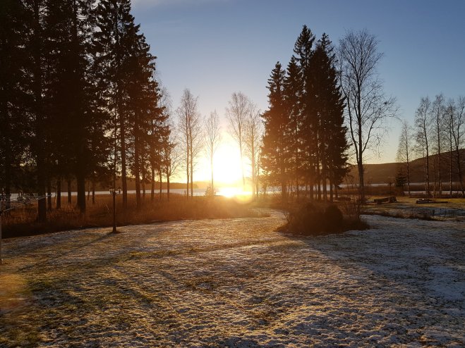Tacksamhet för jobb till trots så behövde jag semester. Lite knäppt efter bara 2 månader kanske, men det berodde inte på att jag är jobbtrött utan på att det händer många andra saker i mitt liv nu som har gjort mig urlakad. Det bästa jag kunde komma på för att fly vardagen och ladda lite batterier och sånt där var att åka ut i norrländska skogarna till min far.Bergen, fjärden mot havet, skogen, tystnaden och mörkret. Vad det gör mycket. Ingen bilväg som hörs. Inga gatlyktor som skymmer stjärnorna. Att det dessutom öst ner regn i två dagar har inte gjort mig ett skit på ren svenska. Tvärtom har jag suttit i min egna lilla stuga och myst i värmen från kaminen och lyssnat på smattret.