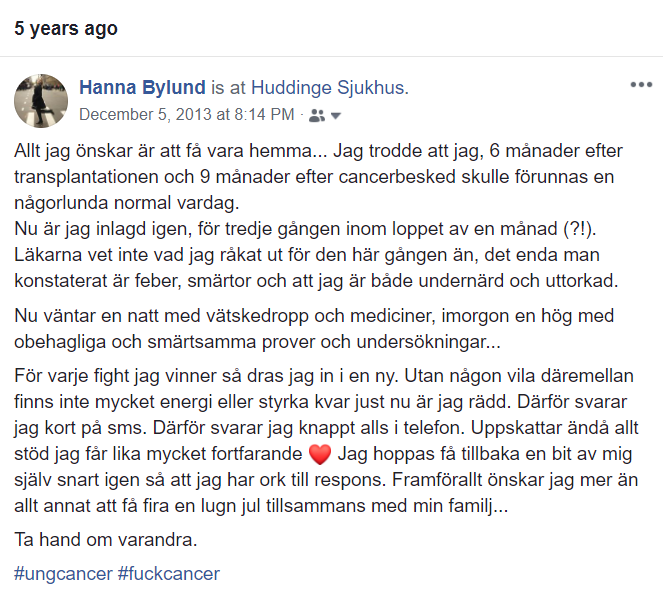 Jag vill dela med mig av ett minne som hoppade upp på Facebook idag. Inte för att göra någon illa till mods, eller mig själv för den delen, och verkligen inte för att söka medömkan. Jag vill dela det för att påminna oss alla om att söka de små stunderna vi är tacksamma över och kanske till och med vända det som känns så tråkigt till något fint.