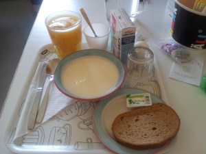 Sov riktigt uselt i natt. Somnade kring midnatt och vaknade 02:00… Två ynka timmar!! Låg vaken fram till 04:00 med krypningar i hela kroppen och tusen tankar som snurrade. Allt det här känns så overkligt. Har jag verkligen cancer? Ska jag verkligen transplanteras? Eller kommer jag att dö? Det kändes som att jag drömde fast jag var vaken… Och när jag väl somnade så var det bara i en timme för sen kom sköterskorna schemarätt in för att ta blodprover. Lyckades slumra lite efter det fram till klockan 08:00 då det var dags för frukost. Så ja, riktigt tung natt. Tack och lov att jag bara kunde vrida på huvudet och se att mamma sov i sängen bredvid. Man blir aldrig för gammal för att söka mamma när man behöver tröst och det kändes tryggare bara av att se henne.